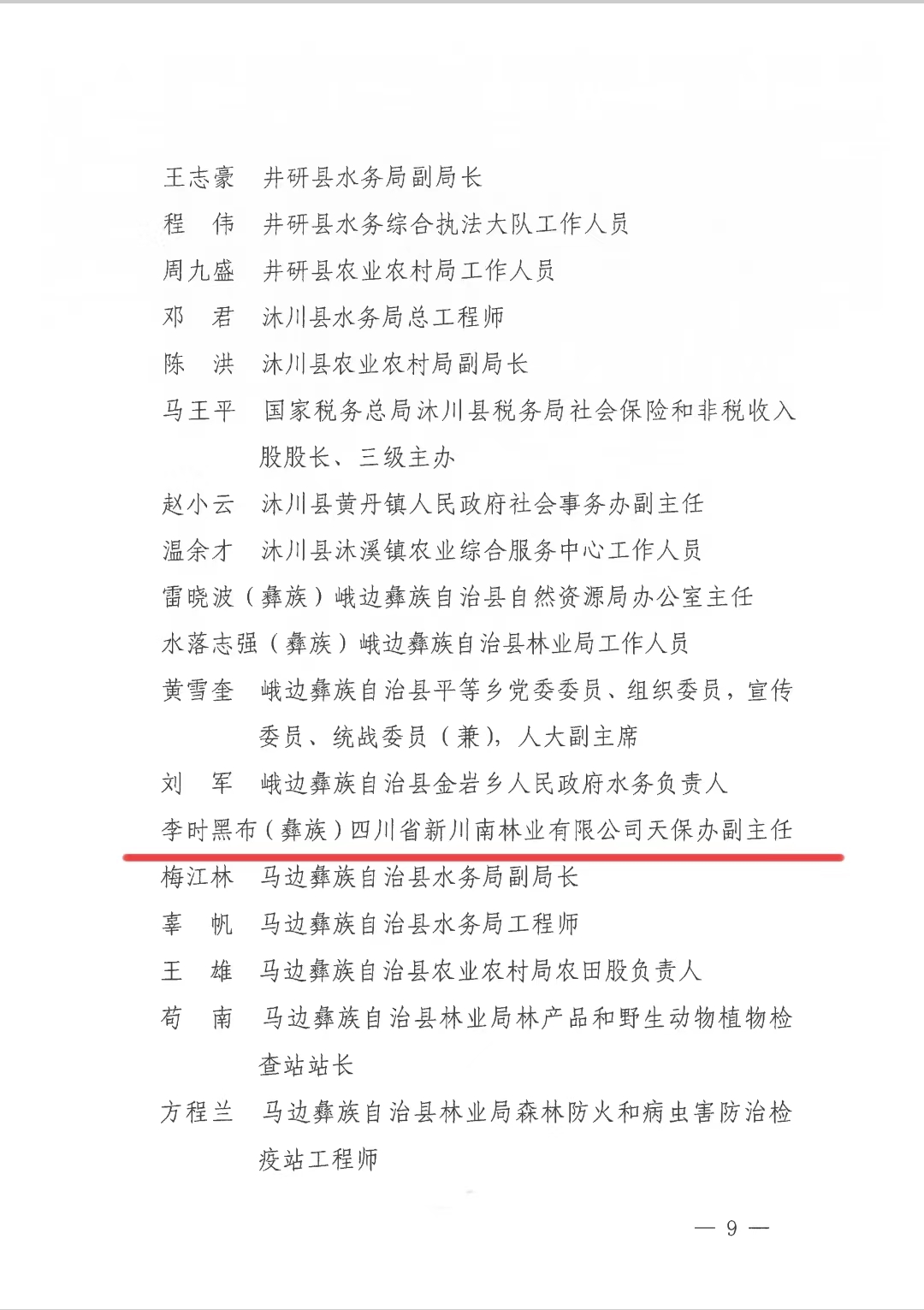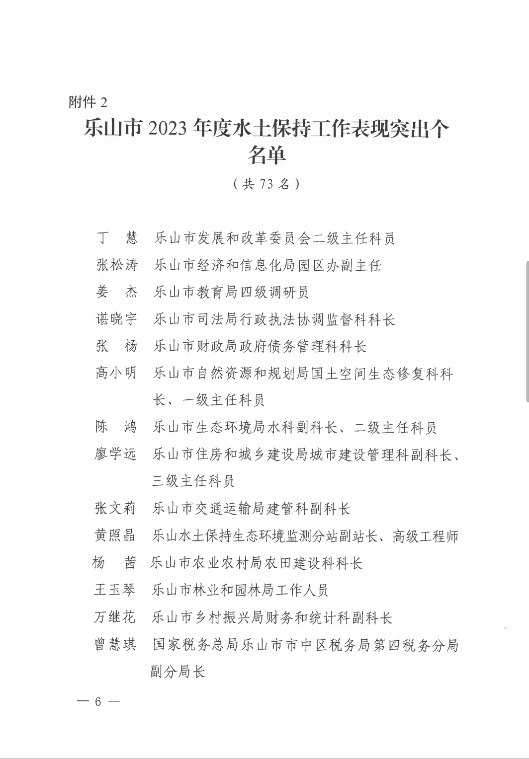 根據(jù)(樂水保委【2024】4號)文件,樂山市水土保持委員會對全市2023年水土保持工作中表現(xiàn)突出的49個集體、73名個人發(fā)文予以表揚,公司天保辦李時黑布同志榜上有名,喜獲“樂山市2023年度水土保持工作表現(xiàn)突出個人”稱號。