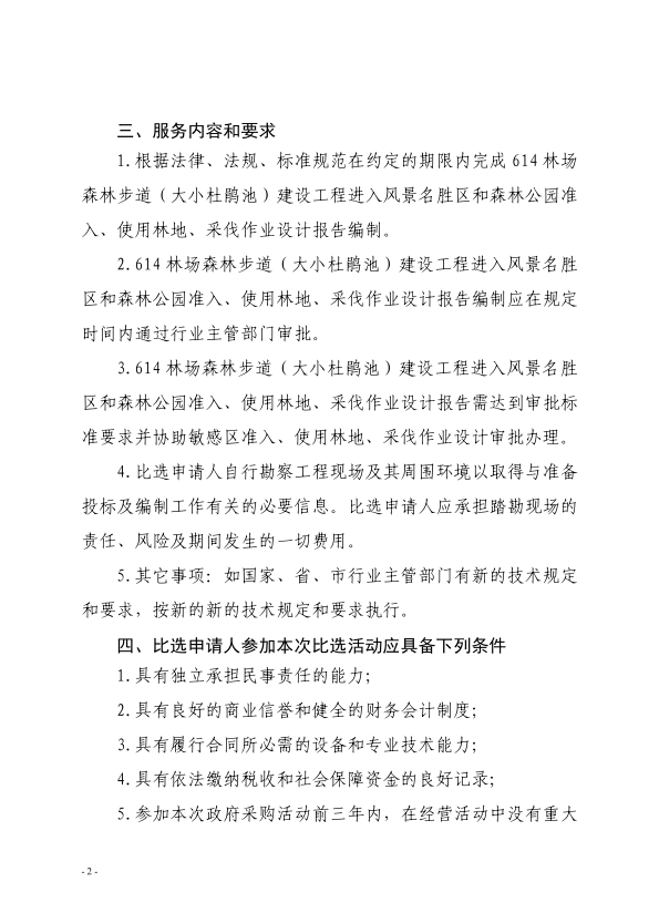 四川省新川南林業(yè)有限公司樂山市峨邊彝族自治縣國家特色竹森林公園項(xiàng)目(四期)關(guān)于614林場(chǎng)森林步道進(jìn)入風(fēng)景名勝區(qū)和森林公園準(zhǔn)入等工作編制的比選公告