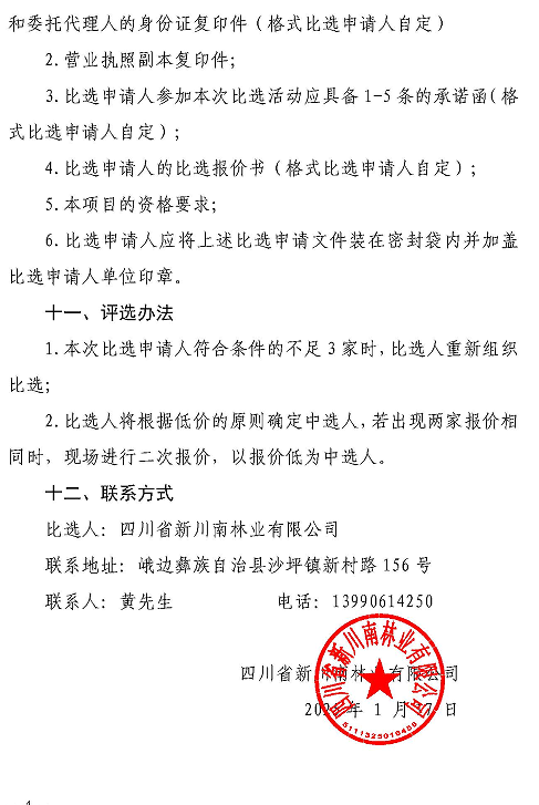 四川省新川南林業有限公司采伐林木銷售比選公告